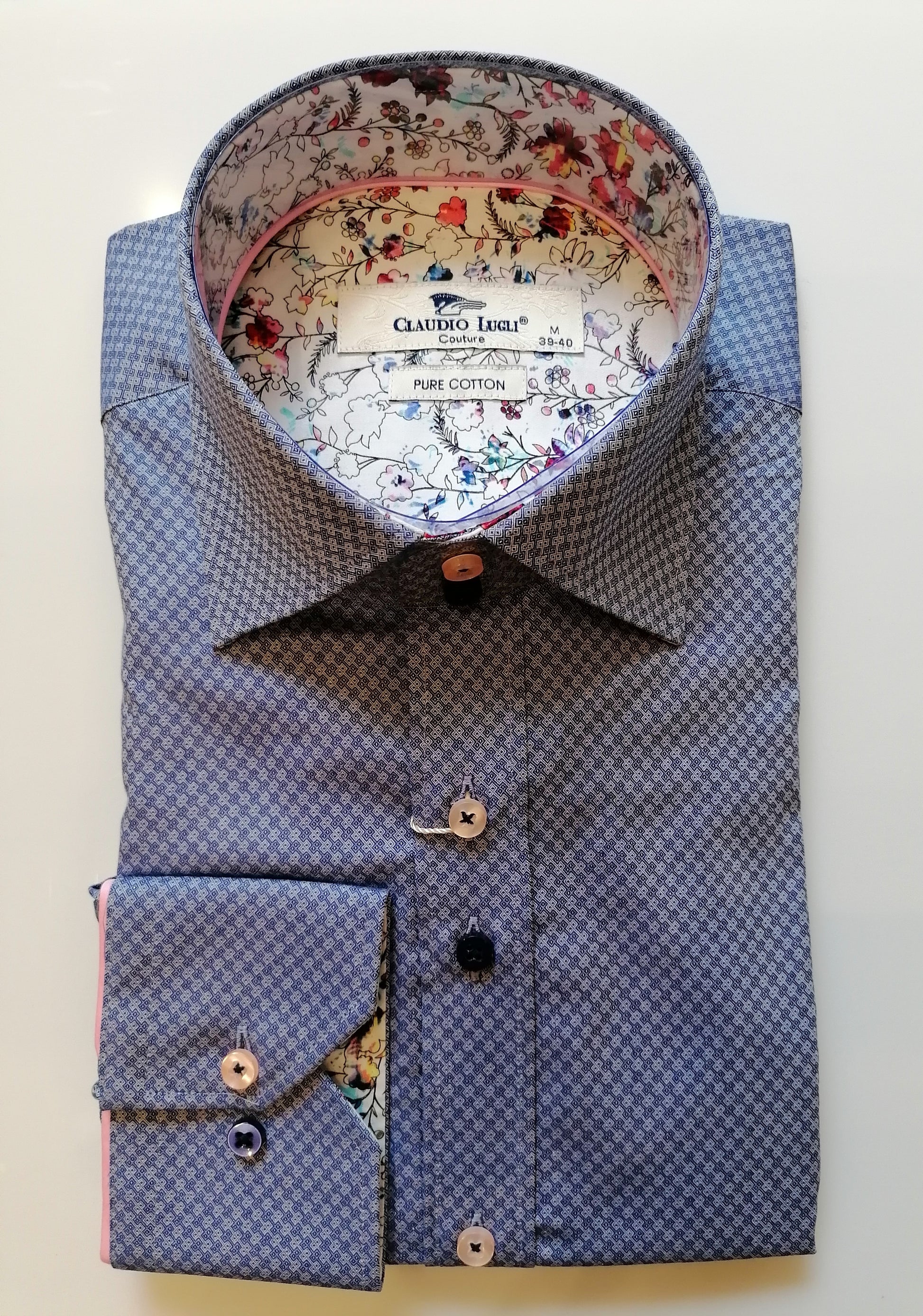 Claudio Lugli Men's "Navy Jacquard check" Cotton Shirt.