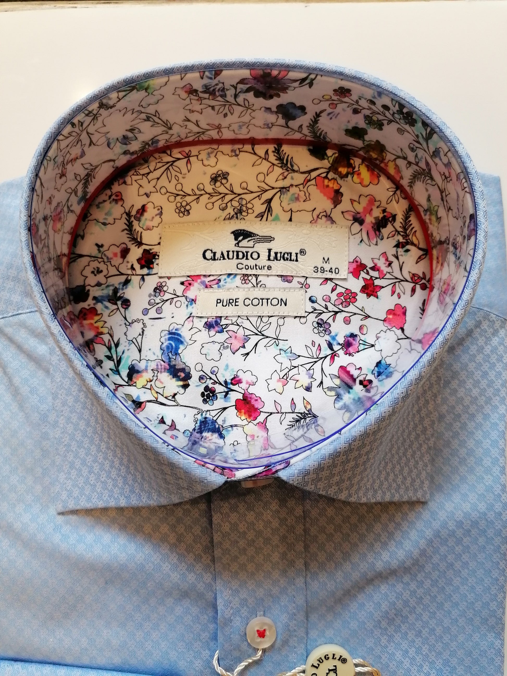 Claudio Lugli Men's "Sky Jacquard check" Cotton Shirt.
