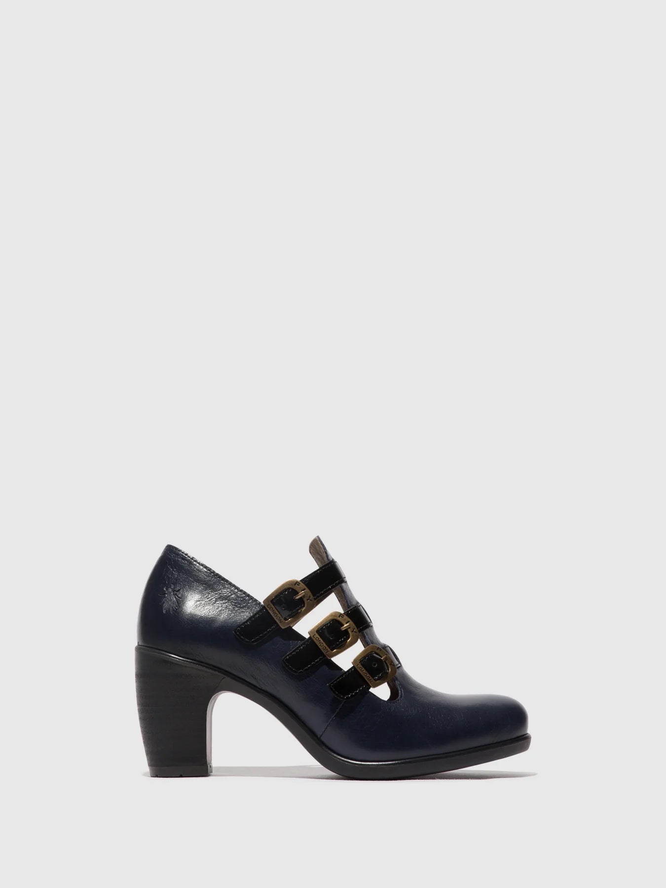Original style shoes made with the best quality leather. These shoes have 3 elastic buckles, a beautiful ornament for a modern and dynamic heeled shoe for women. In striking navy/black leather, matched with black buckles, these shoes have a comfortable rubber heel, 7.5 cm high. Rubber sole for the best comfort.