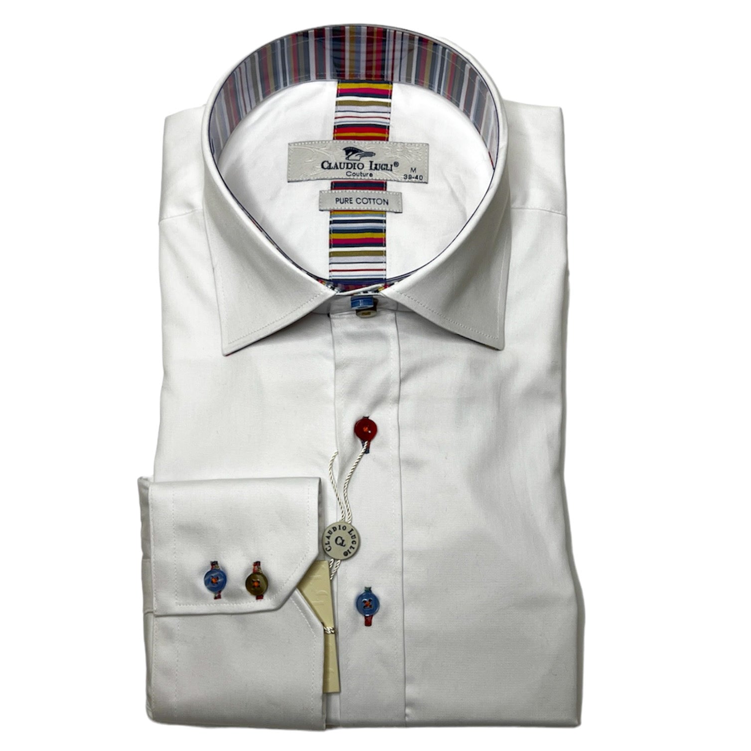 Claudio Lugli Men's "White Stripe Trim" Cotton Shirt.